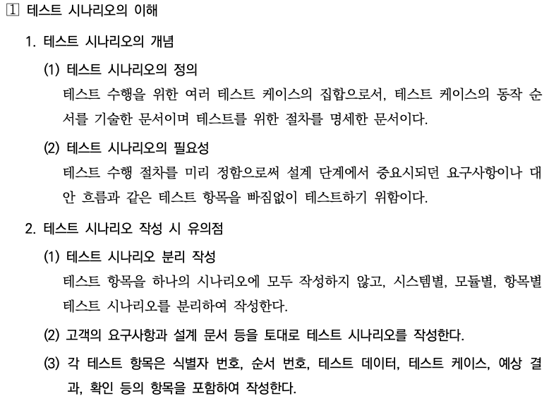 10. 테스트 수행을 위한 여러 개의 테스트 케이스의 집합으로 테스트 케이스의 동작 순서를 기술한 문서의 명칭을 쓰시오.