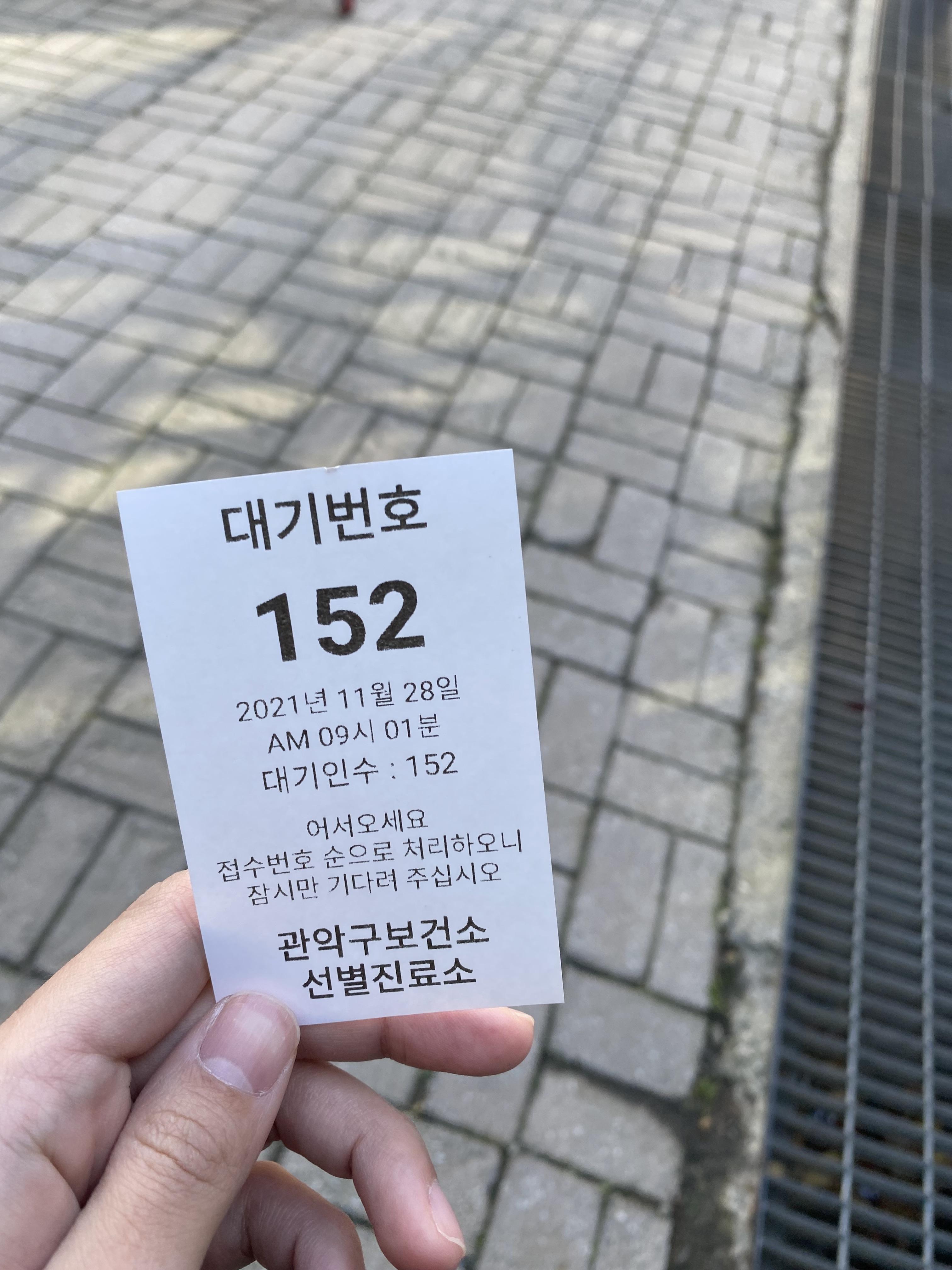 관악보건소에서 검사가 처음이라 길을 좀 헤메고, (번호표 뽑는 기계를 못찾았다....)