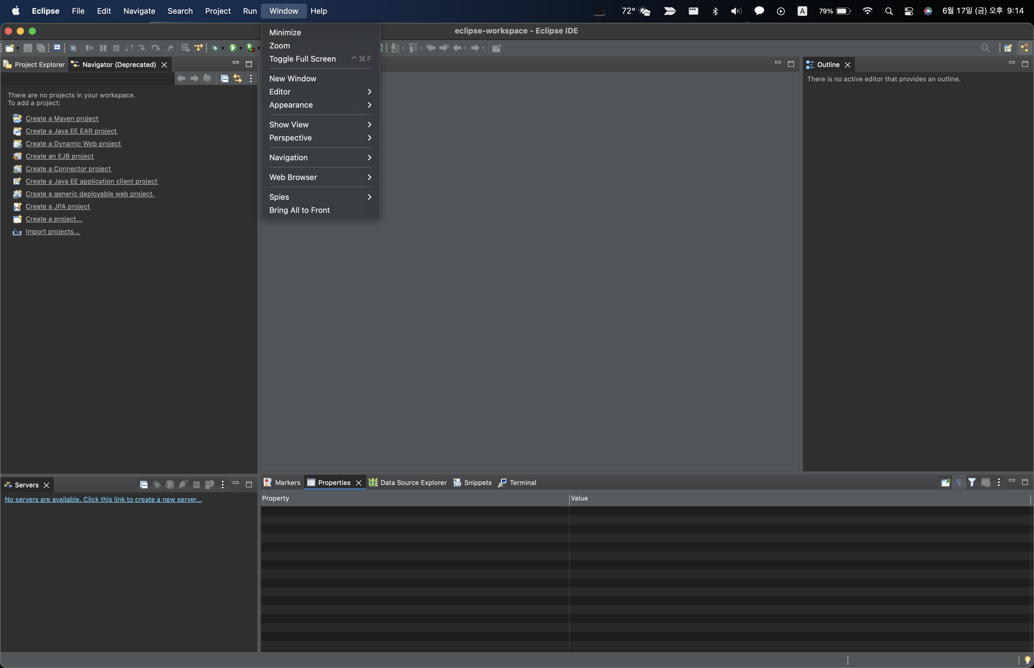 하지만 Mac은 사과모양 옆에 Eclipse에서 preferences를 찾을 수 있으니 참고하자.
