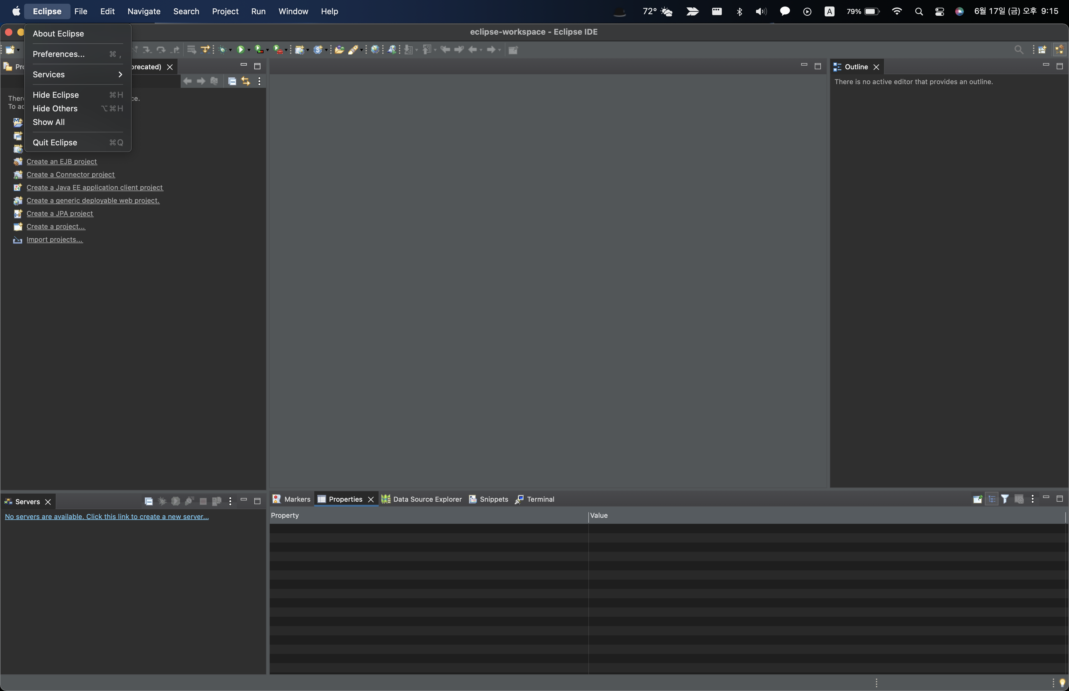 하지만 Mac은 사과모양 옆에 Eclipse에서 preferences를 찾을 수 있으니 참고하자.