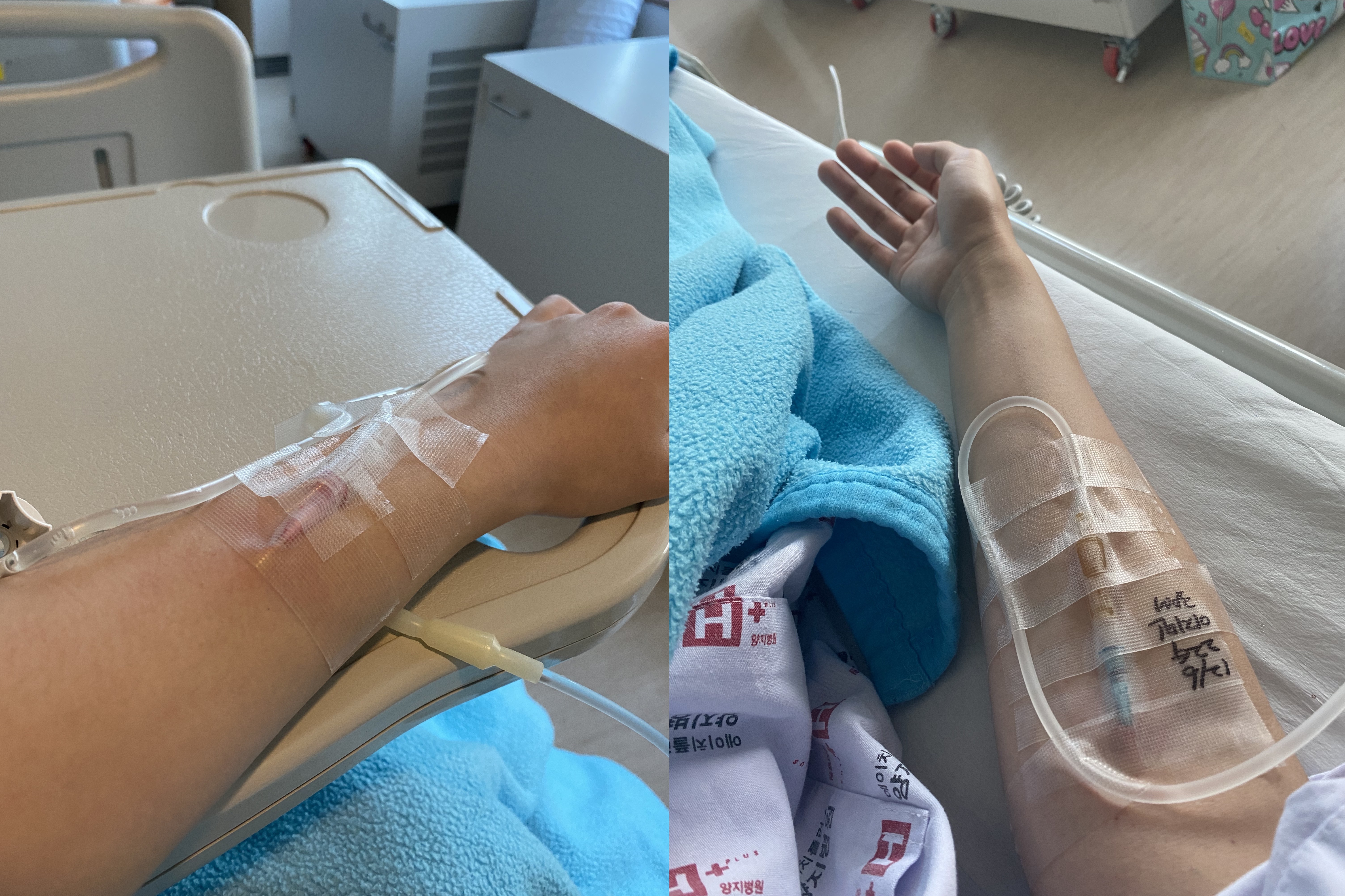 나는 열이 높아서 생리식염수를 2일정도 계속 맞았다.