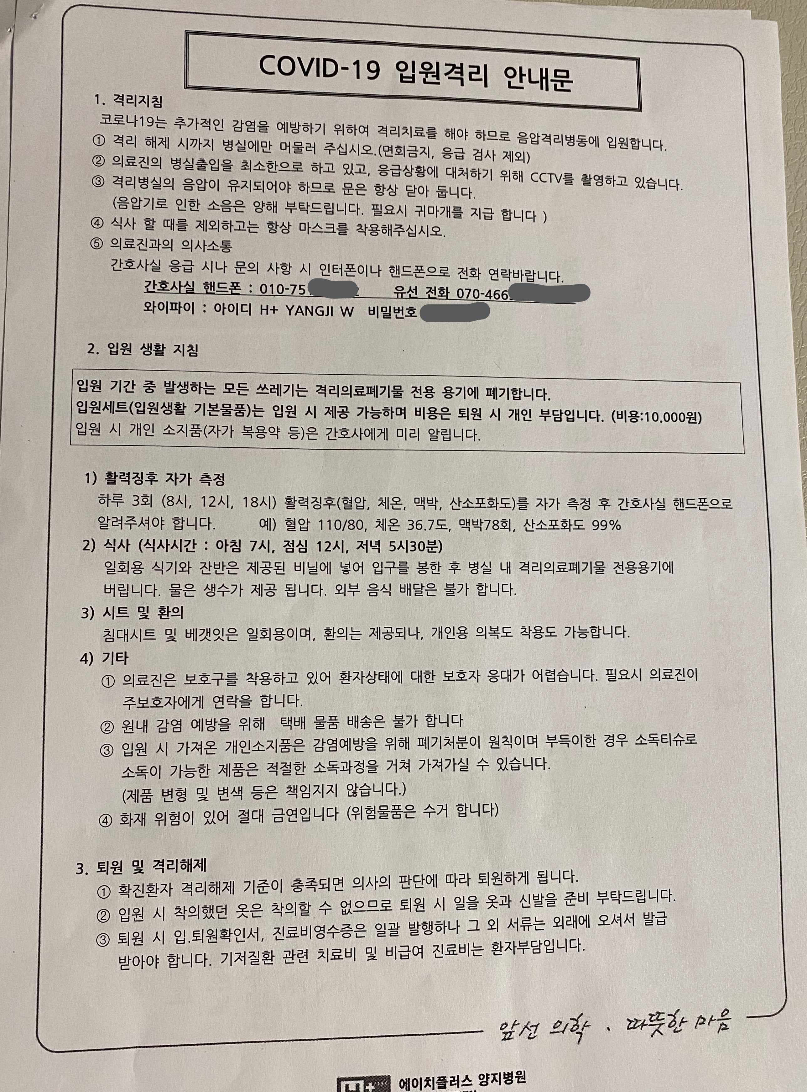 ※ 본 포스팅은 코로나19 바이러스 확진(양성)으로 인한 신림 에이치플러스 양지병원 입원생활에 대한 글입니다.