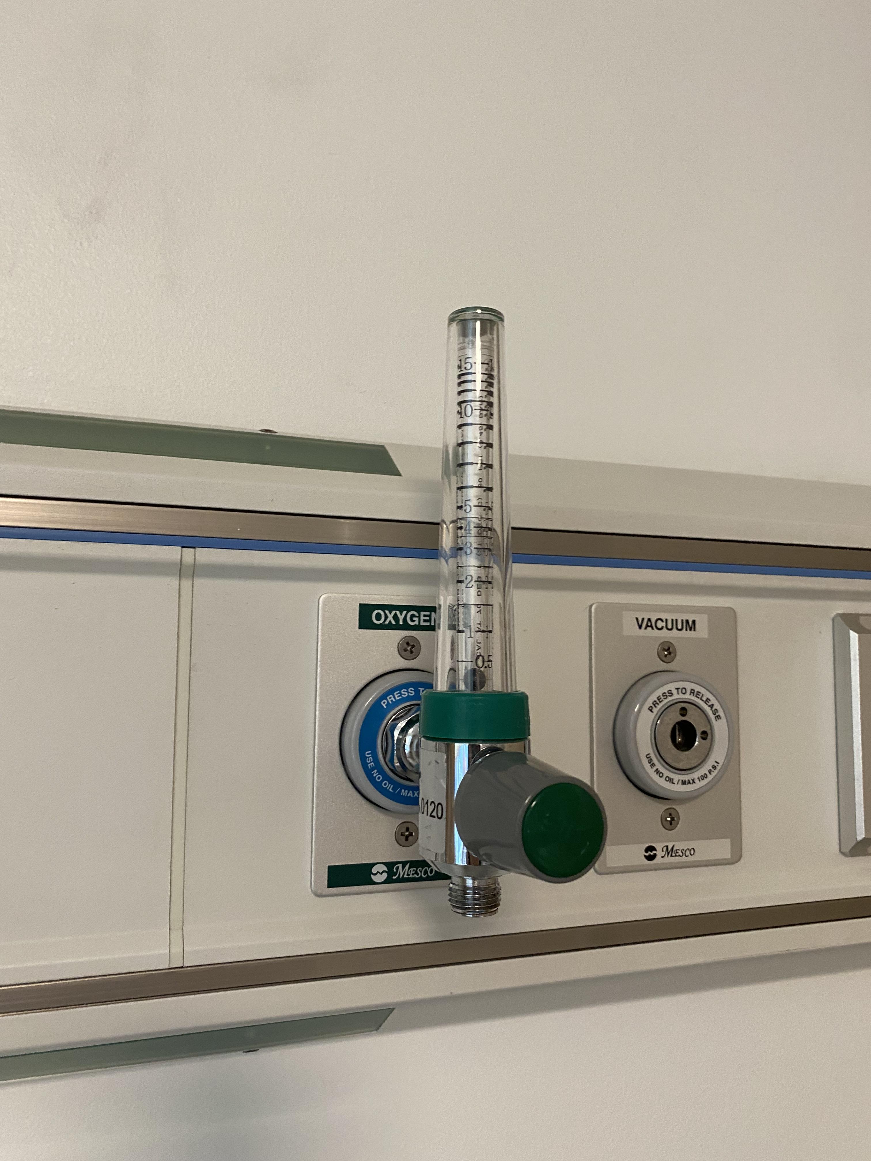 - 필요한 환자는 병원 침대 위의 벽에 아래 산소발생기를 꽂아준다.