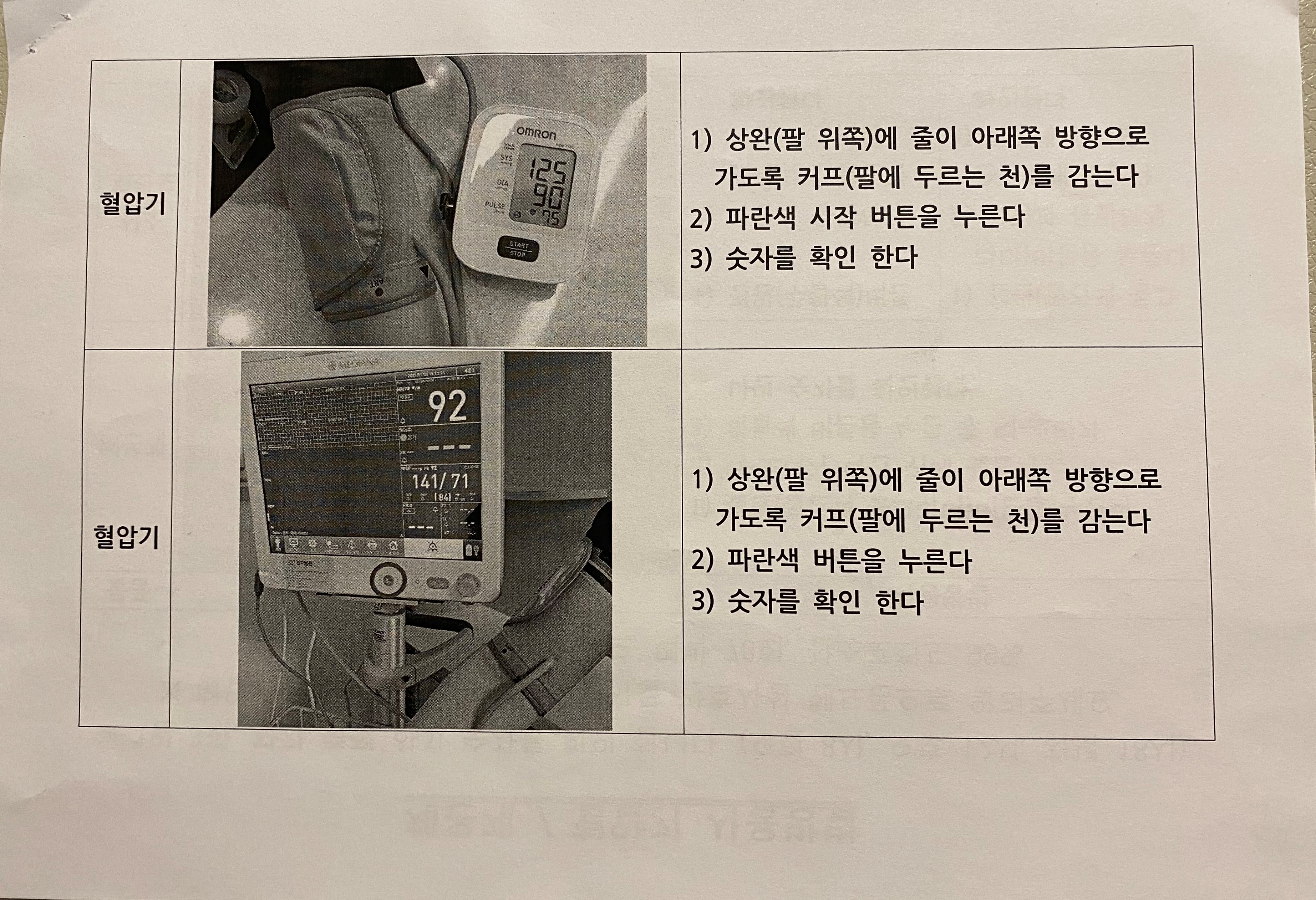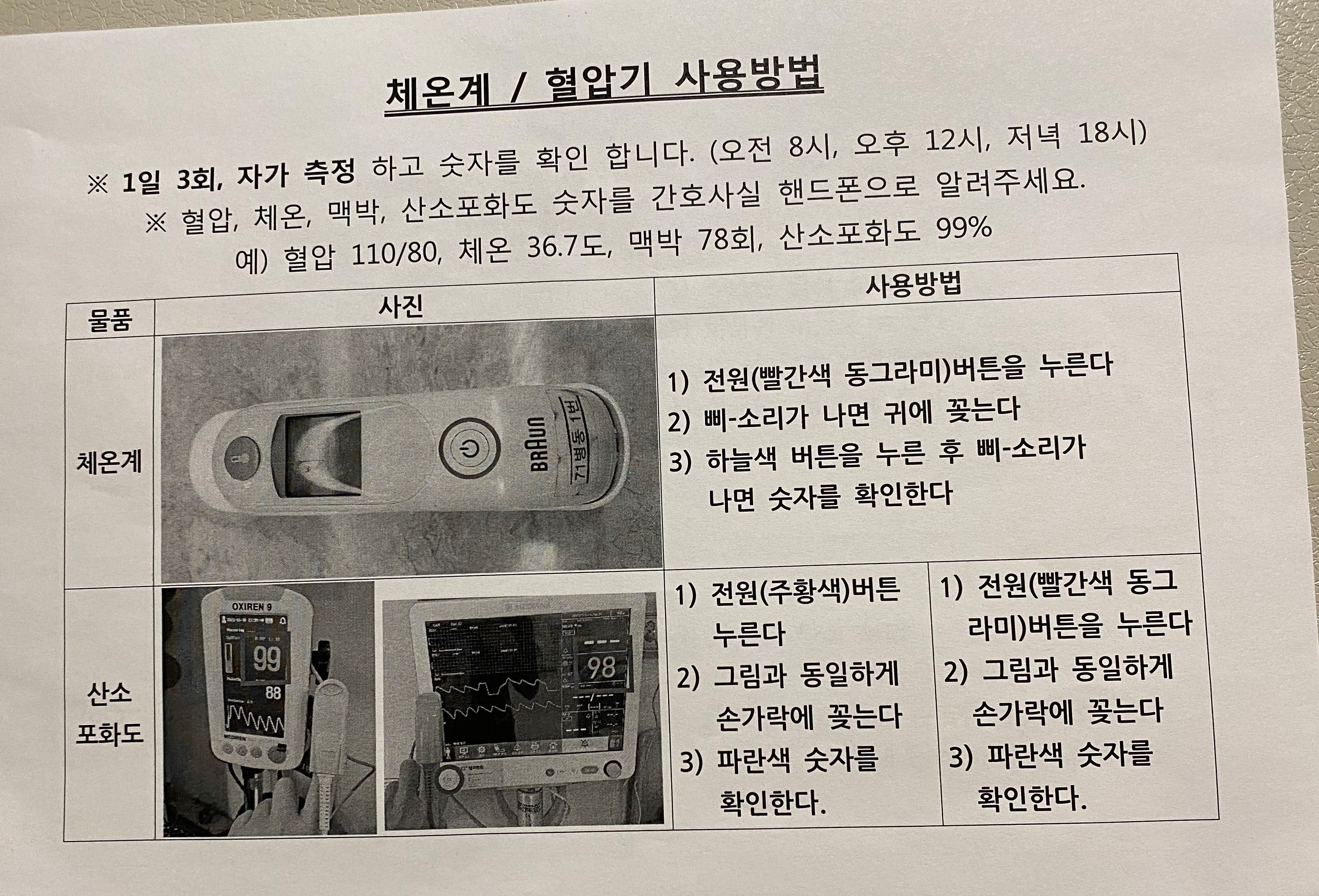 입원 시 받은 안내문인데, 여기에 측정방법이 굉장히 자세하게 설명되어있다.