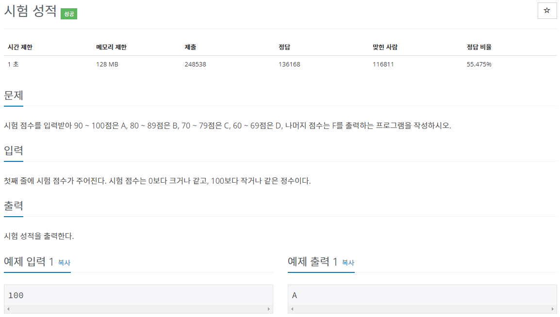 [baekjoon][Java] 9498번 - 시험 성적 본문
