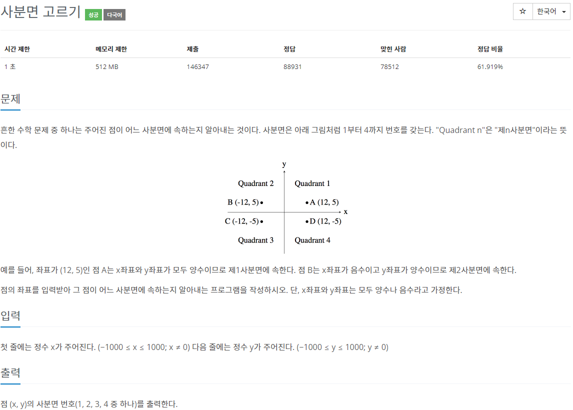 [baekjoon][Java] 14681번 - 사분면 고르기 본문