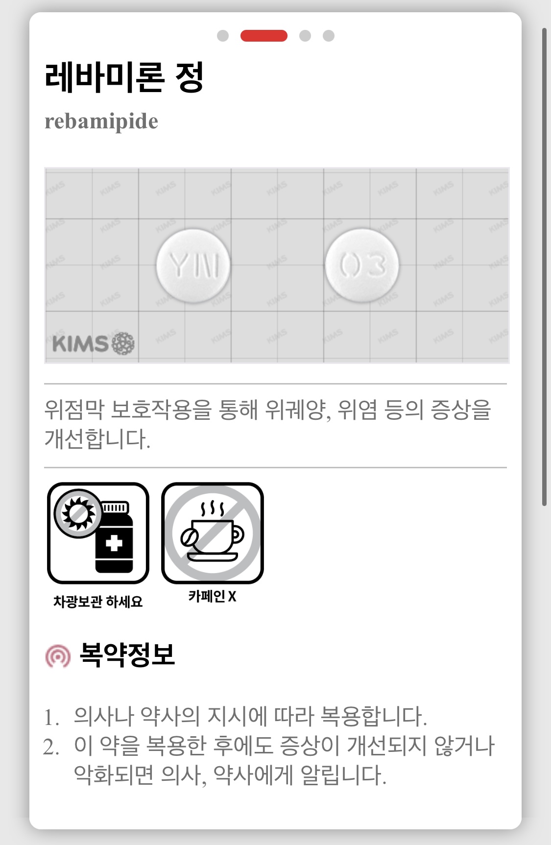 나는 입원해서부터 퇴원 후 7일간 식후 약에 모두 레바미론이 포함되어있었다.