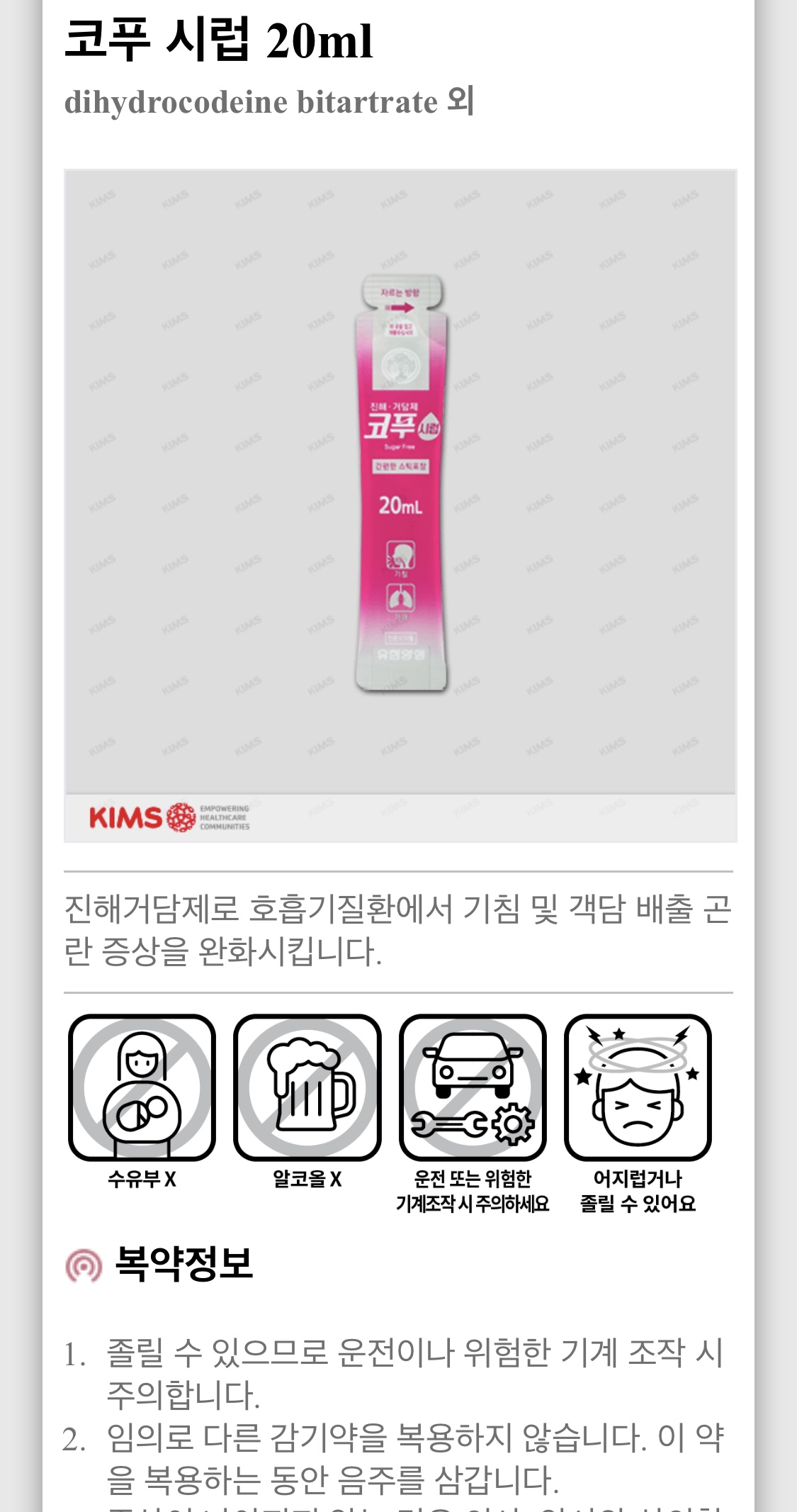 이 약은 따로 찾아보지 않았는데 기침과 관련한 약인 것 같다.