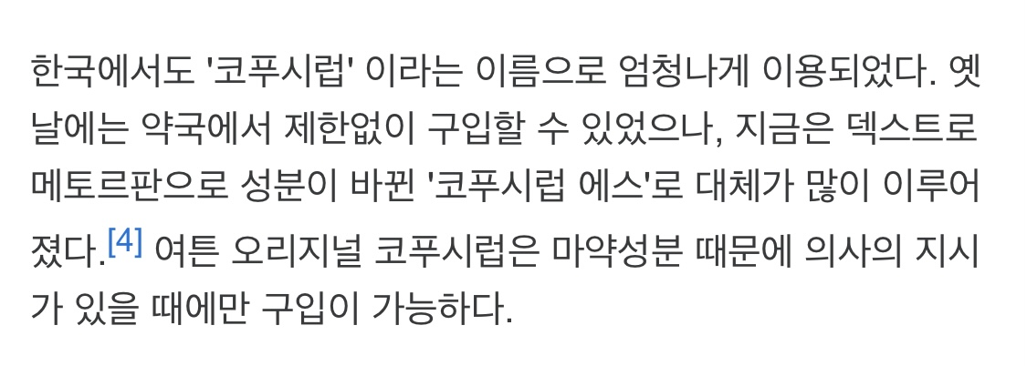 아마 처방없이 약국에서 감기약을 자주 사먹는 사람들을 익숙한 약이 "코푸 시럽 S"일 것이다.