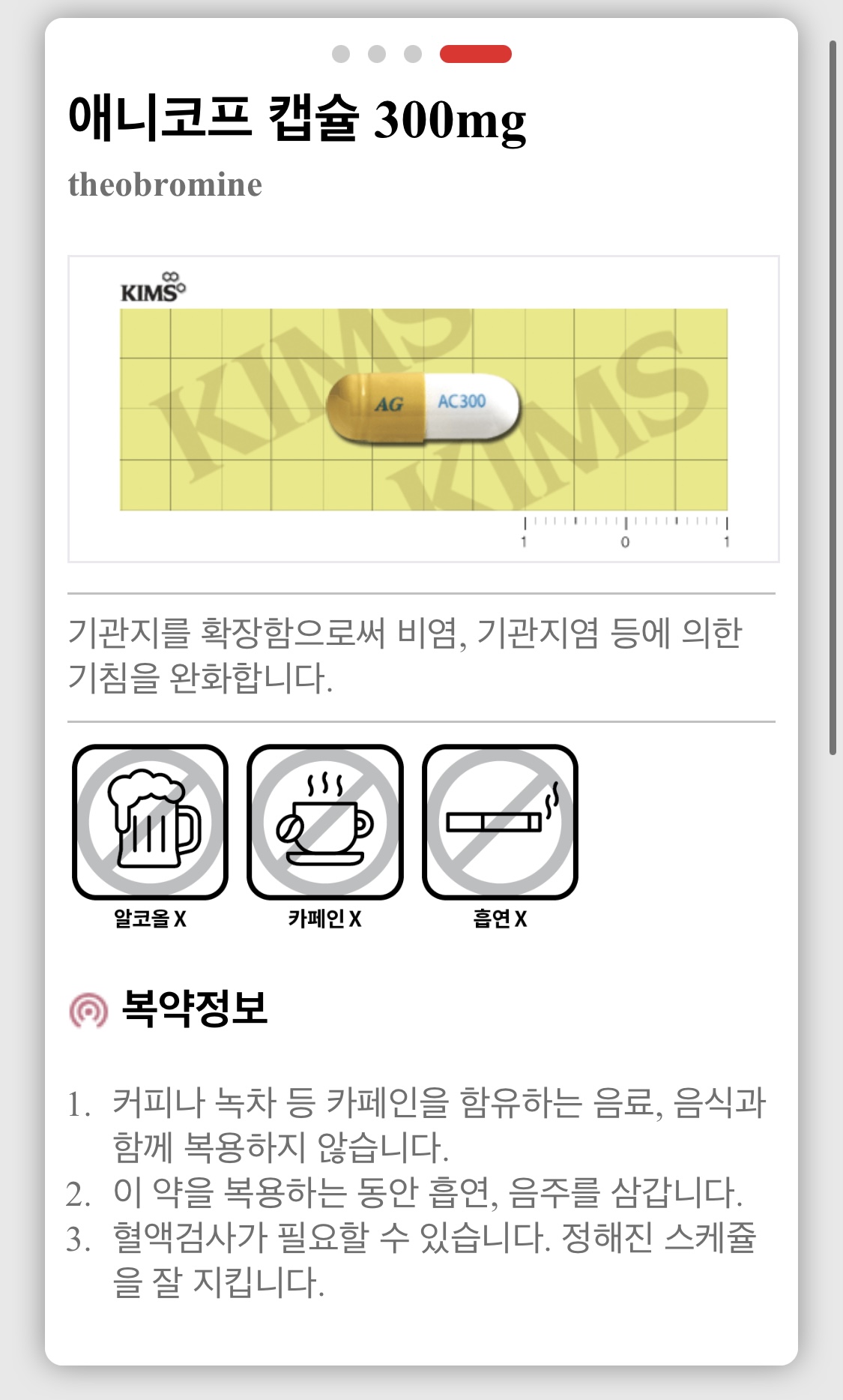 이 약은 따로 찾아보지 않았는데 기침과 관련한 약인 것 같다.