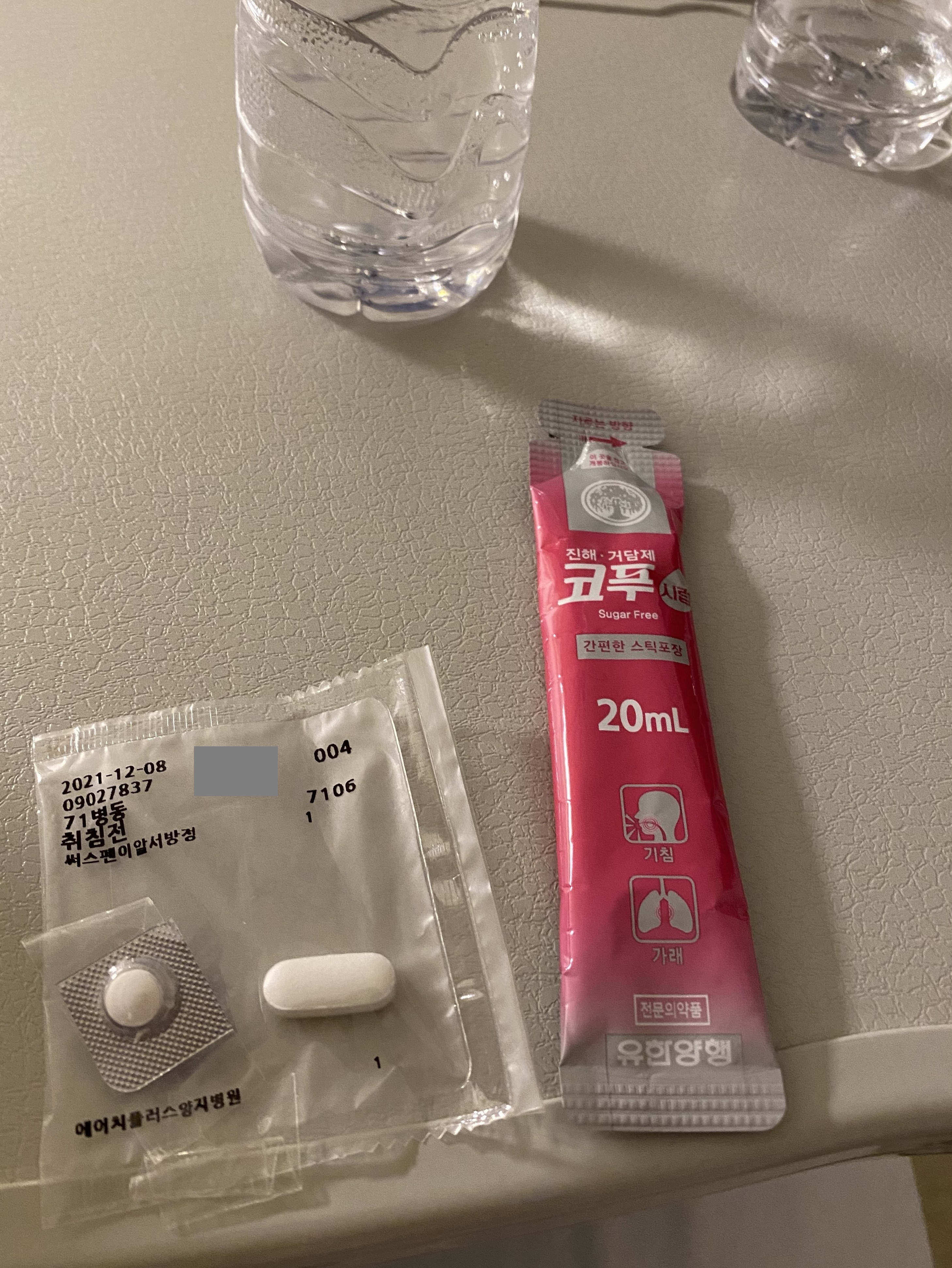 나는 병원에 있는 동안 코로나 증상 치료를 위한 목적으로 총 5개의 약과 변비약을 처방받았다.