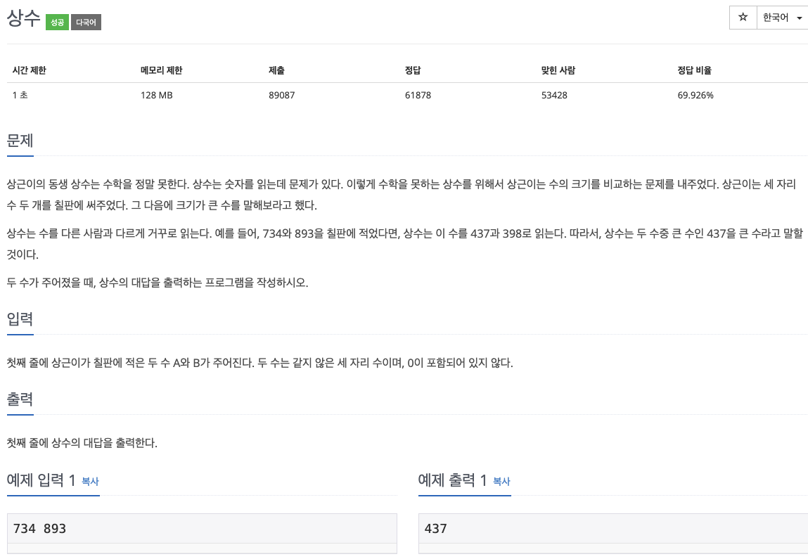 [baekjoon][Java] 2908번 - 상수 본문