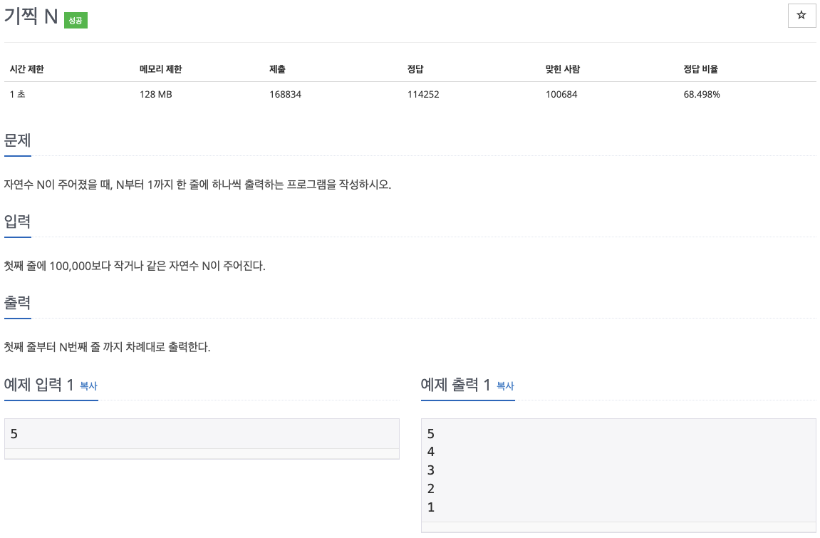[baekjoon][Java] 2742번 - 기찍 N 본문